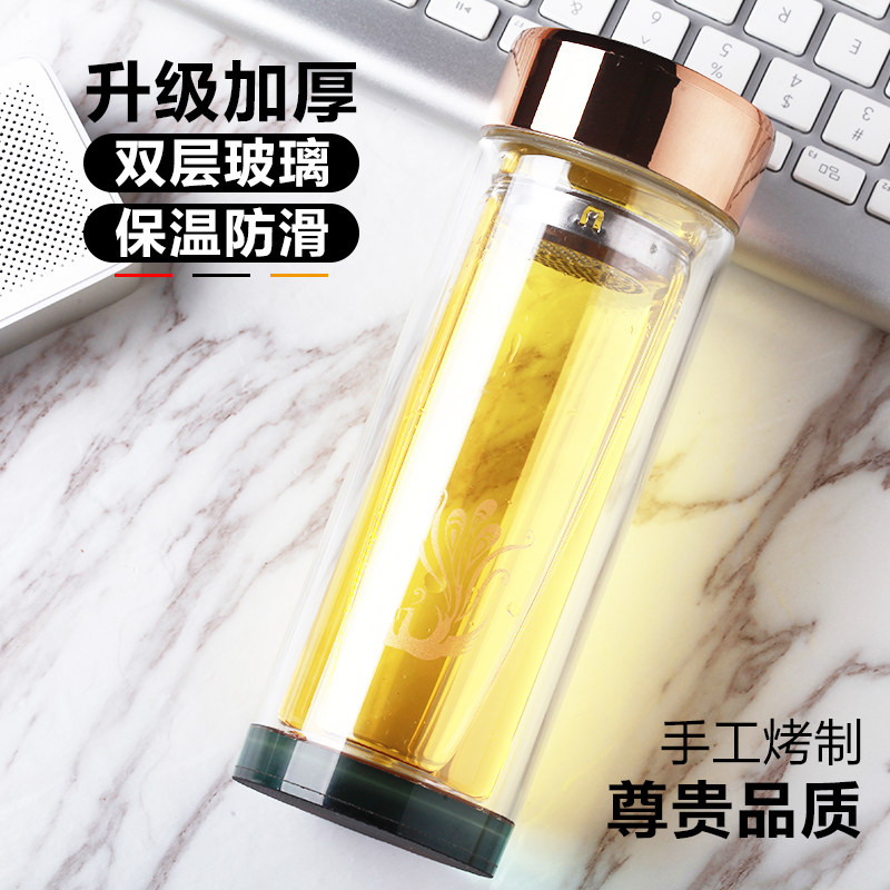 Double-layer glass cup printing custom gift cup custom LOGO tea cup high-end crystal cup will sell gift cup