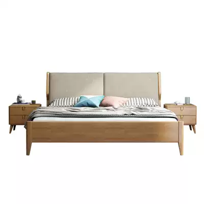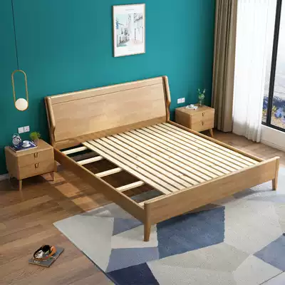 Nordic style solid wood bed Simple modern master bedroom double bed 1 8 meters adult bed Large bed Wedding bed 1 5 high box bed
