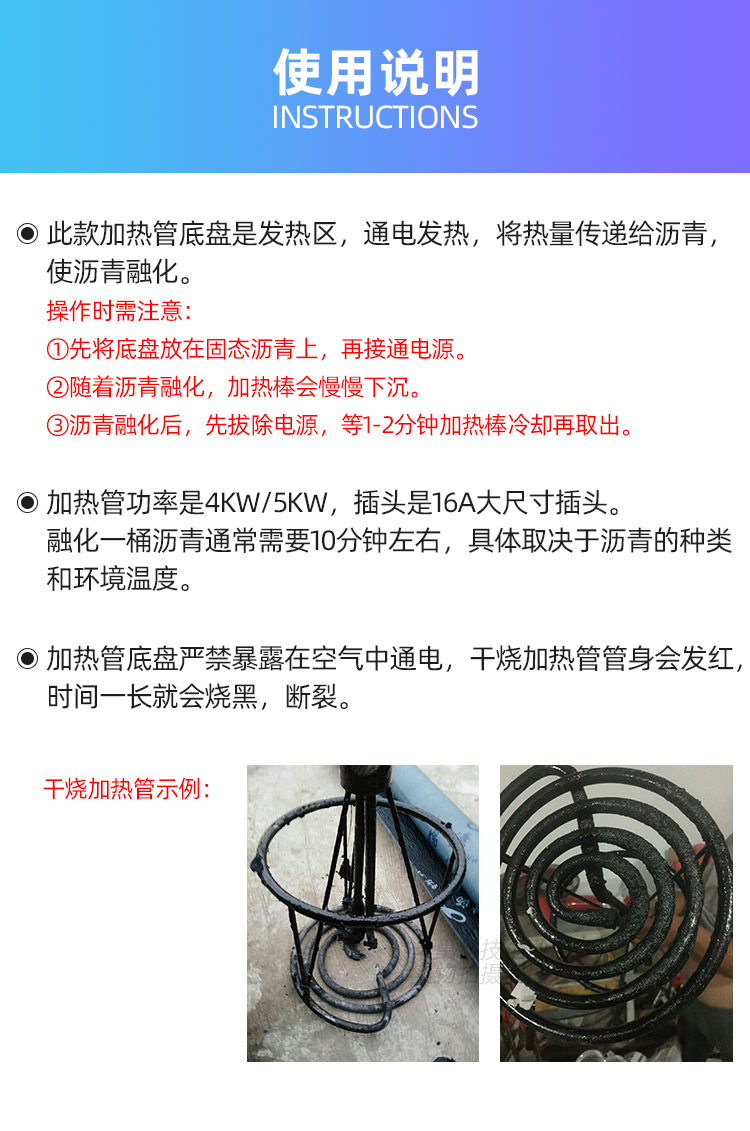 Non - cured rubber asphalt heater engineering waterproof material electric heating pipe 220v coating heating tube electric rod