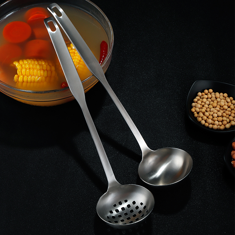 304 stainless steel soup spoon colander with hook hot pot spoon Household small kitchen hot pot spoon set commercial trumpet