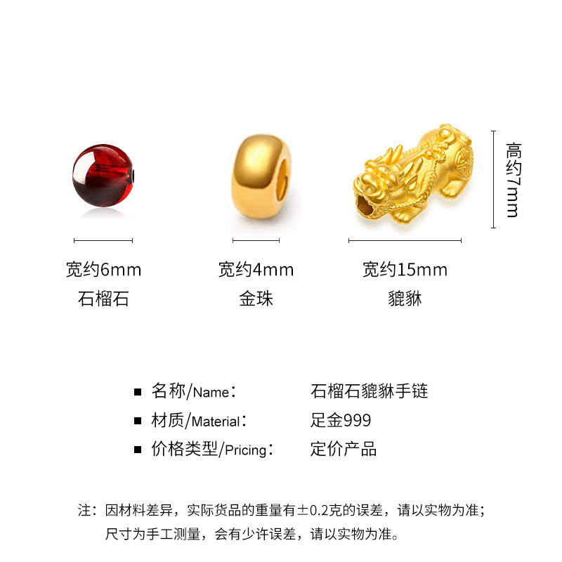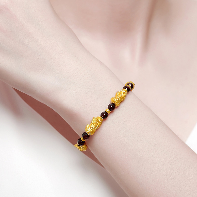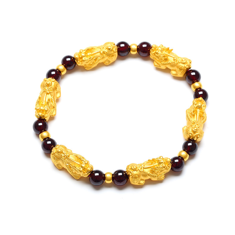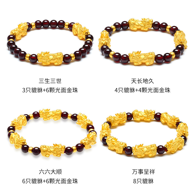 Lucky Gold Pixiu Shouji Women's 3D Hard Gold 999 Pure Gold Pure Gold Transfer Pearl Gold Pixiu Garnet Agate