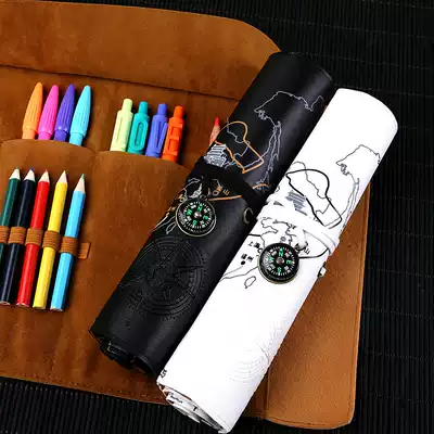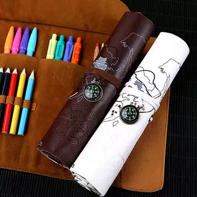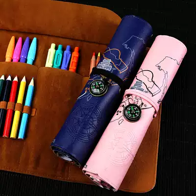 Nine-year six classes One Belt, One Road retro multifunctional large-capacity roll pencil case Korean boys and girls simple elementary school Net red pencil box kindergarten junior high school students creative color pencil pencil stationery box pen curtain