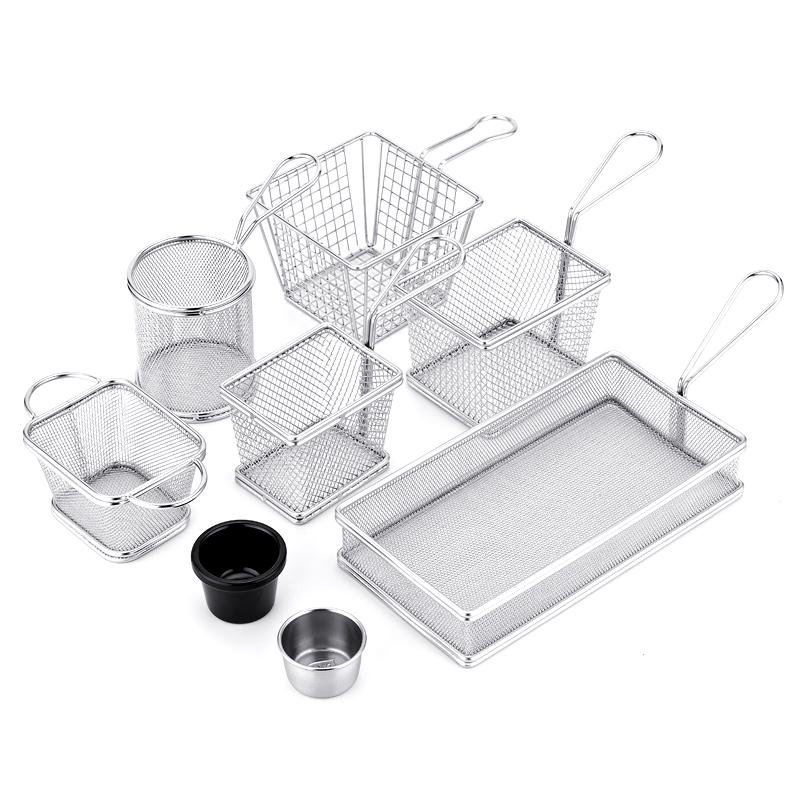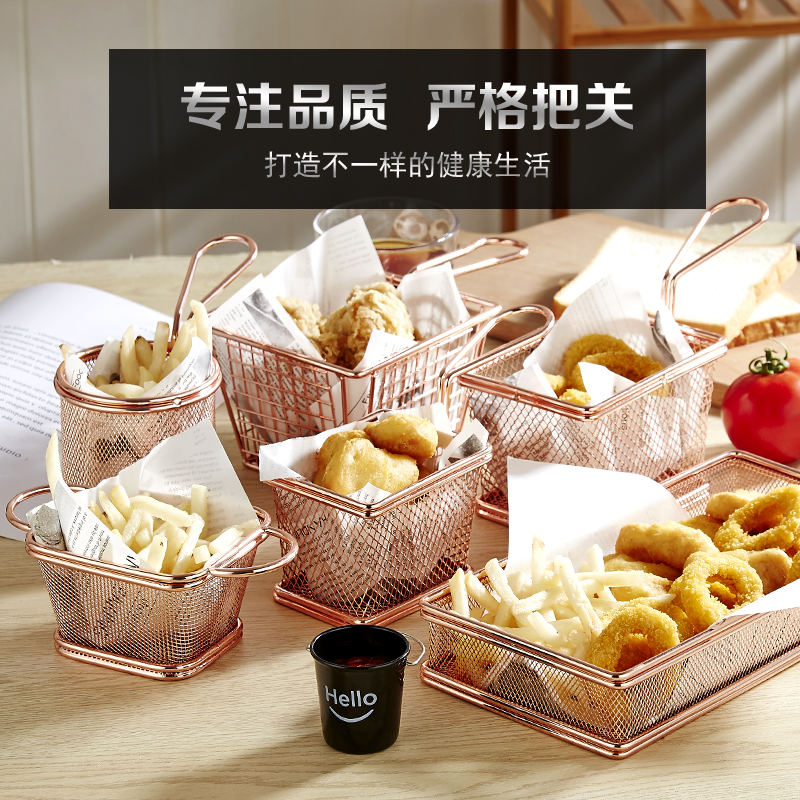 304 stainless steel chip basket Snack basket Mini fried basket fried chicken box chicken wing basket Creative American Western restaurant commercial