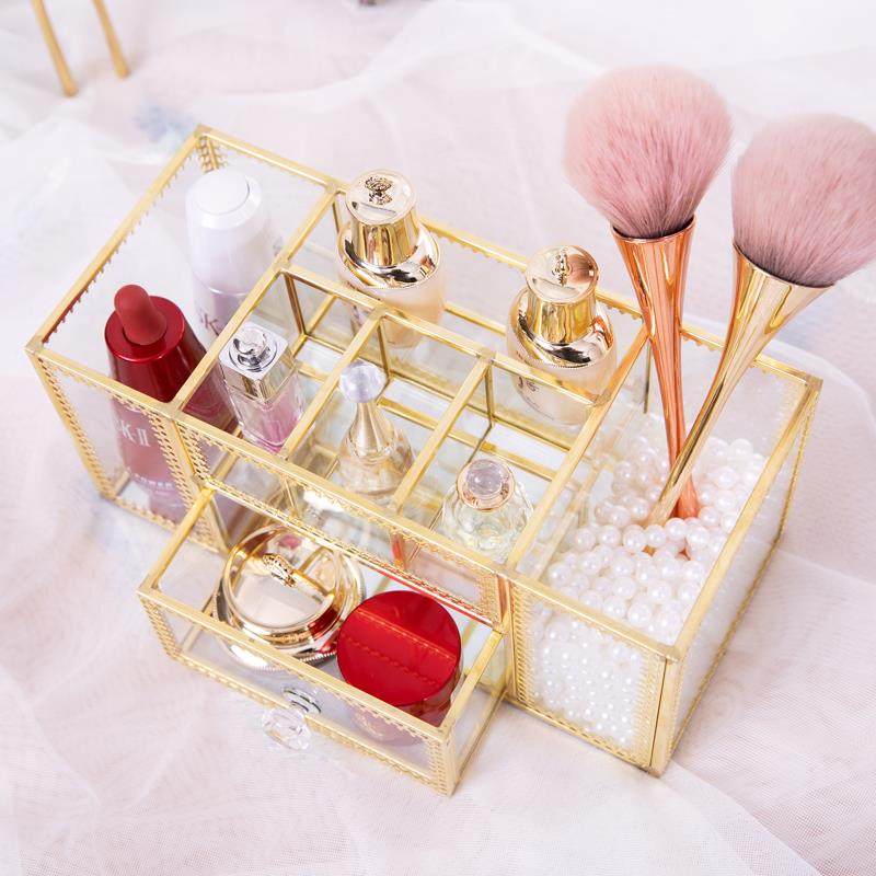 Net Red Beauty Nail Beauty Salon Cosmetic Pen Brush Drum Skin Care Products Glass Containing Box Tabletop Shelve Accessories Accessories