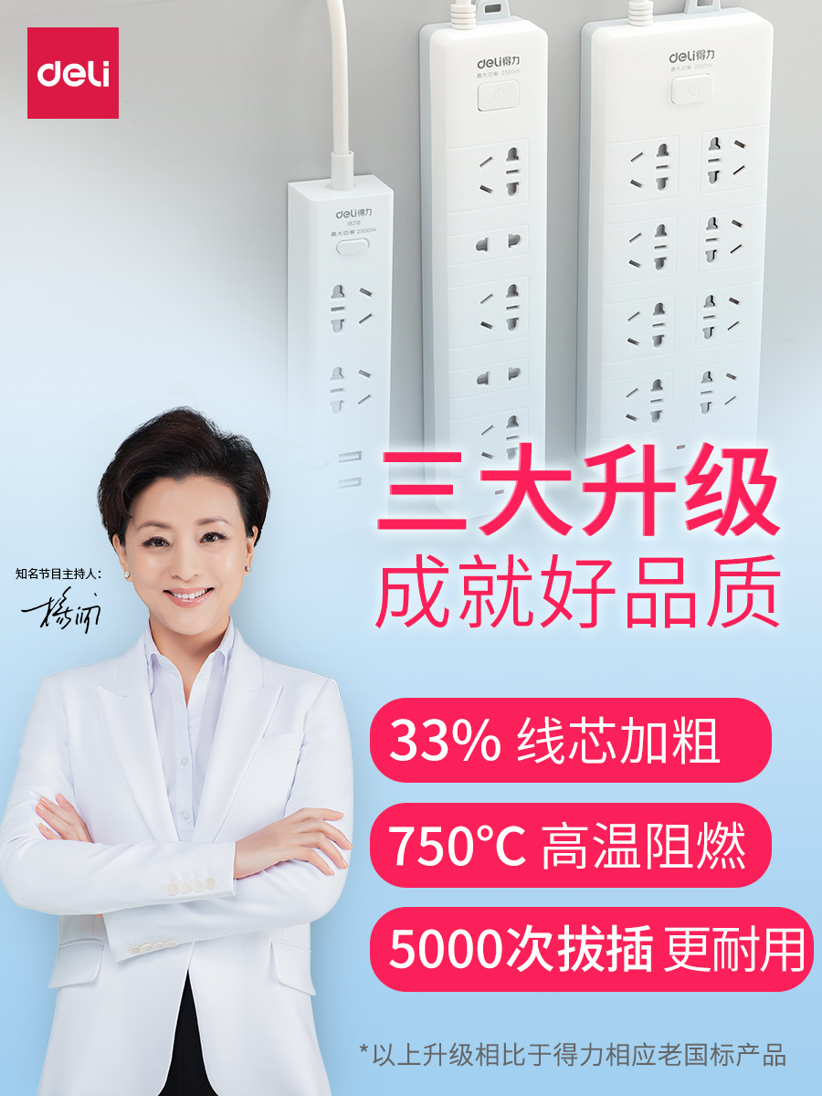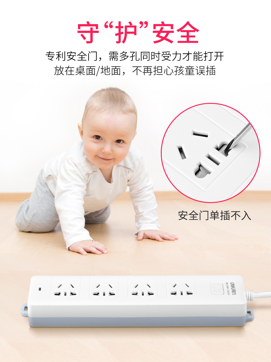 Flushing Punch Crown Extension Cord Multifunction Plug-In Socket Panel Porous Student Dorm Room Home 3 m 2 Power Tug