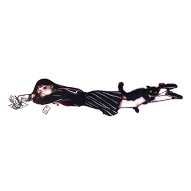 Break the wave original tattoo stickers ins wind Cat and girl collarbone can cover tattoos Super cute comics