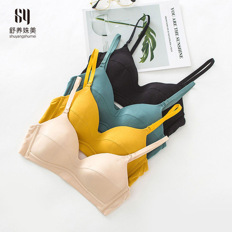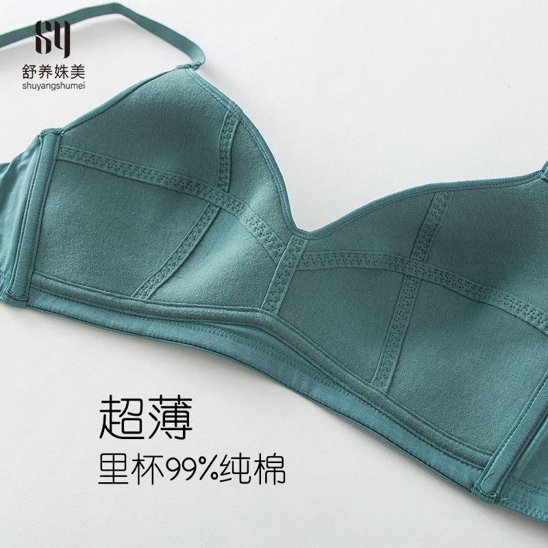 No rims big chest small suspender bra cover gathered comfortable ultra-thin cup pure cotton underwear women's summer thin section anti-sagging
