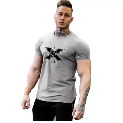 Xia male gym tight cotton shirt shirt top slim army green white sweat absorption sports short sleeve muscle T-shirt tide