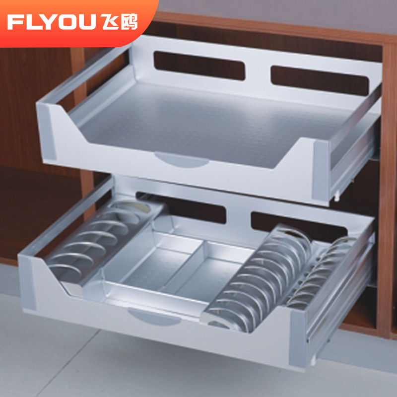 Fly Gull Kitchen Overall Cupboard Double Pull Basket Drawer aluminium alloy damping track Seasoning Pull Basket Double bowl Dish Basket
