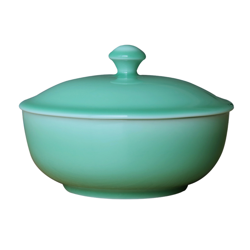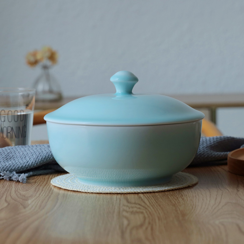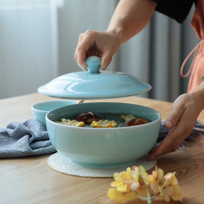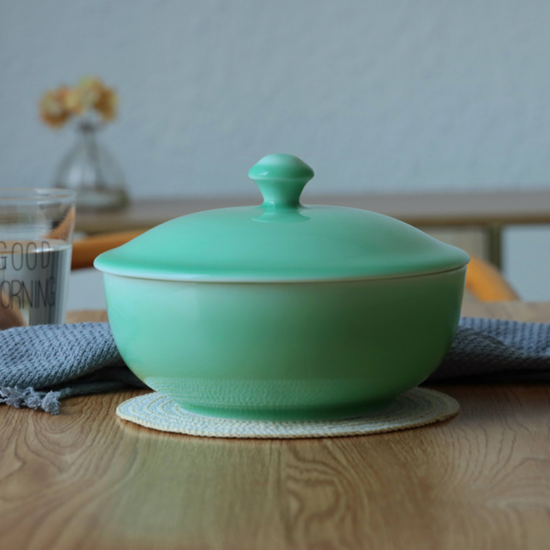 Green porcelain Chinese minimalist pure color vegetarian noodles 8-inch soup bowl with lid pan noodle bowl Ceramic Big Dish Bowl