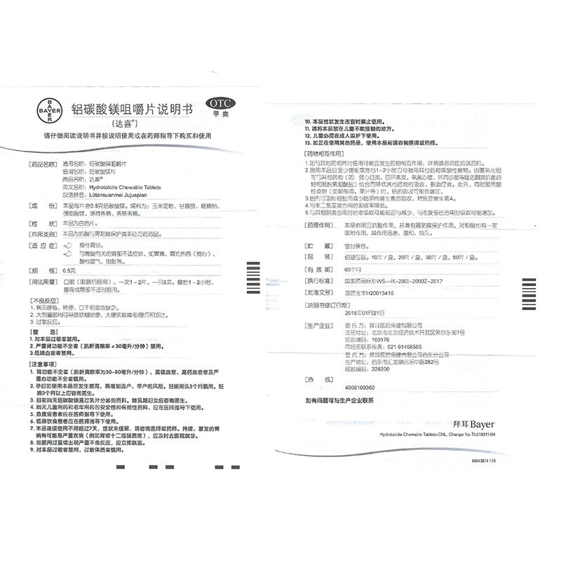 Dajoy Aluminum Carbonated Magnesium Sheet Chewable Tablets 30 Tablets Chronic Gastritis