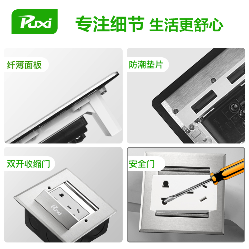 304 stainless steel ground insertion clamshell floor socket concealed waterproof living room floor socket Five holes hidden to insert home