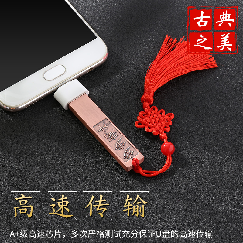 Chinese style flash drive 32G high speed retro style wedding wishful metal custom lettering 32G flash drive creative student female dual use cute USB flash drive genuine personality corporate gift box gift box gift U