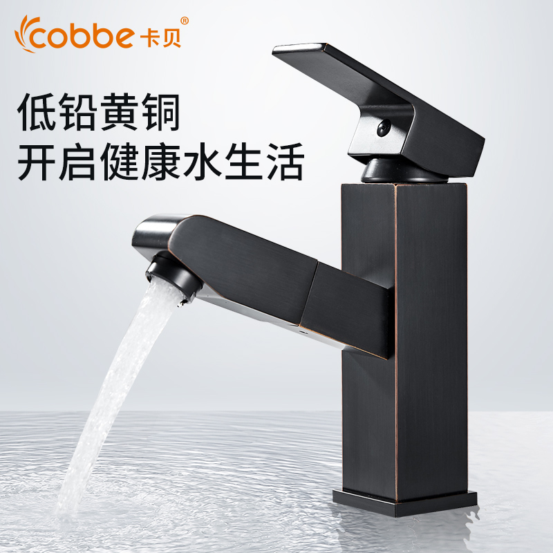 Cabe bathroom black basin faucet table bottom basin full copper dressing room hot and cold single hole washbasin faucet
