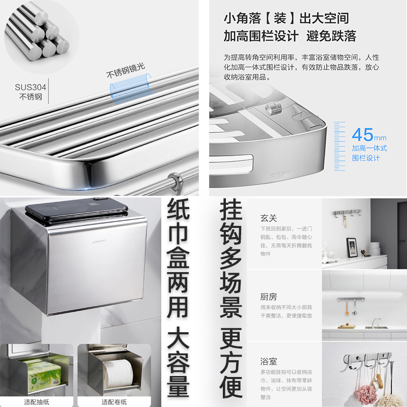 Jiumu bathroom brand stainless steel towel rack bath towel rack hardware pendant set bathroom powder room rack
