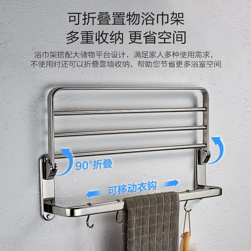 (Punching Installation) Stainless Steel Foldable Bath Towel Rack (Double-use perforation-free) Stainless Steel Foldable Bath Towel Rack (Punching Installation) Stainless Steel 7-piece Set - Store Manager Recommended (Punching Installation)