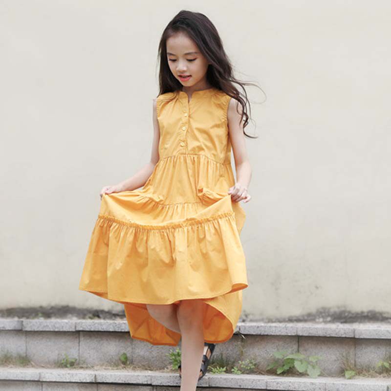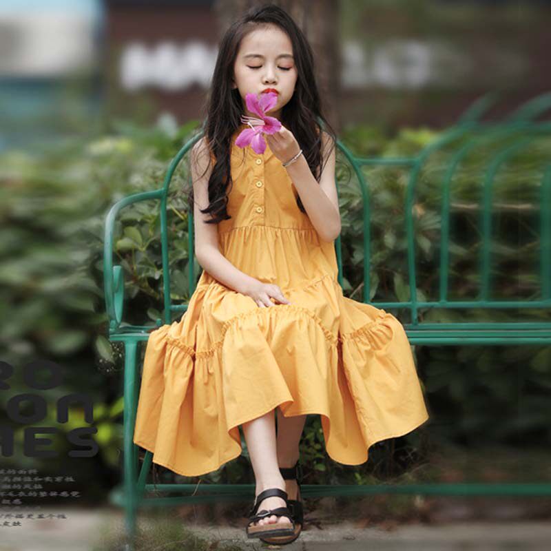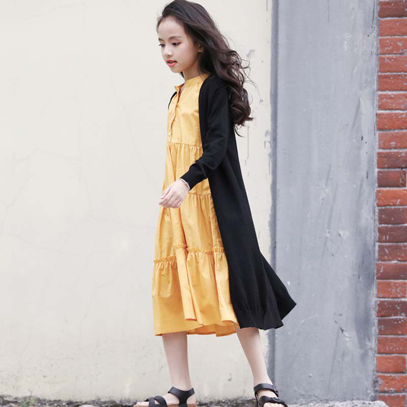 2021 Summer Girls cotton stitching dress Western style Sundress Beach long dress Large child loose cake dress
