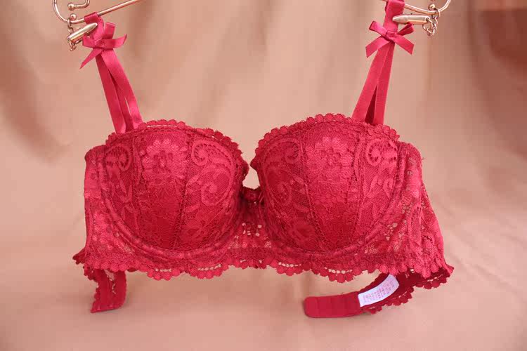 French Romantic Underwear Red White Black Sexy Temptation Lace 1 2 Half Cups Thin Push-Up Bra Set