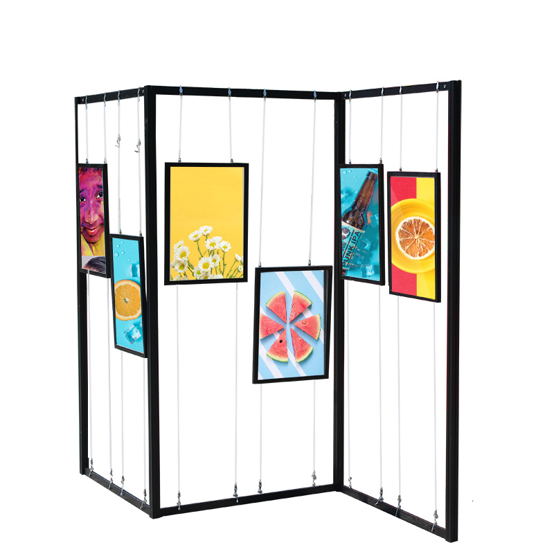 Black eight prism exhibition board Book painting photography display frame Mobile exhibition frame outdoor works promotional and hanging screen