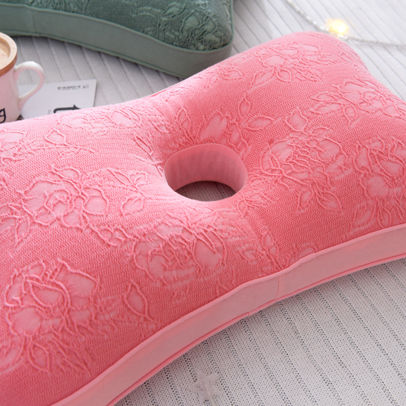 Single-hole protective ear pillow elderly cervical spine pillow washed cotton jacquard one-hole pillow core pure buckwheat shell pillow adult pillow