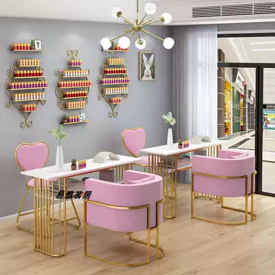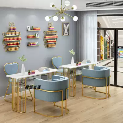ins net celebrity nail art table and chair set combination Marble single and double manicure table Golden nail art shop decoration table