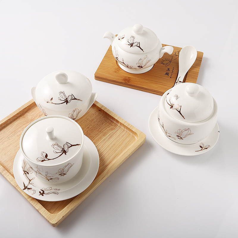 Ceramic saucepan with lid waterproof saucepan liner New Chinese hotel Small soups Steamed Bowl of Steamed Egg Rinds