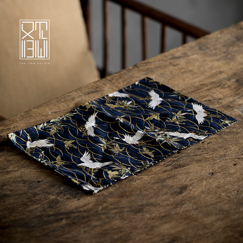 See you again, retro Qianhe bronzing hand-made clean square kung fu tea set accessories double-layer rag absorbent tea towel