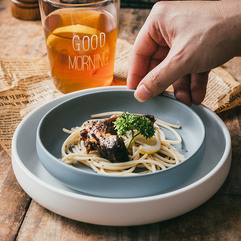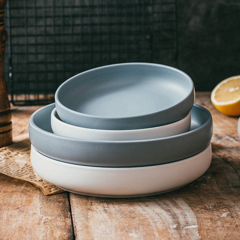 Yizhen Nordic matte ceramic salad plate disc deep plate nest plate white simple household soup plate plate shallow bowl