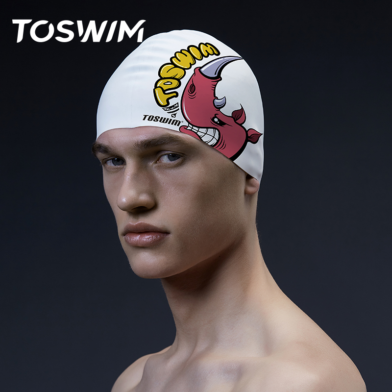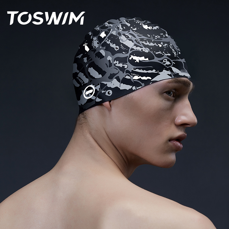 TOSWIM trailbladed swimming cap man to step up waterproof without stranglehead professional men's adult protective ear silicone swimming hat-Taobao