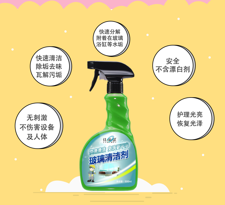 Glass Cleanser Decontamination Floor Tiles Descaling Dewater Scale Windows Home Wipe Spray-Free Detergent