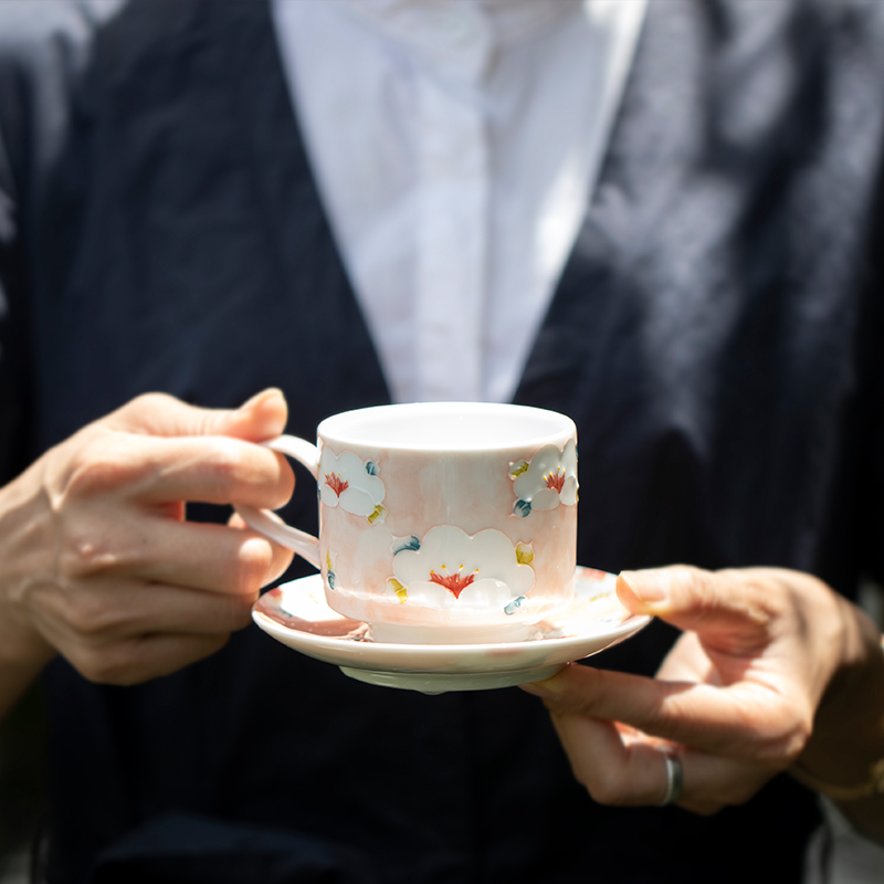 mountain flower espresso coffee cup small number mountain flower coffee cup with disc blue mountain flower coffee cup with disc pink mountain flower concentrated coffee cup small black gift box mountain flower coffee cup with disc blue black