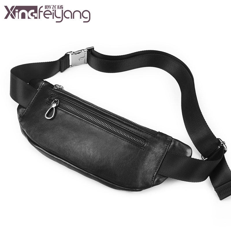 Thin body belt bag true head layer sheepskin men 2021 new fitness sports running leisure cross-body phone breast bag