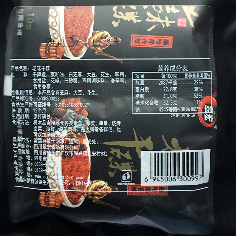 Cui Hong Old Dry Disc 10g*10 bag of small packaging hot pot string of seasoning barbecue dip containing peanut crushed chili pepper noodles