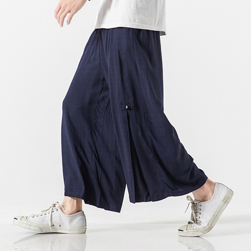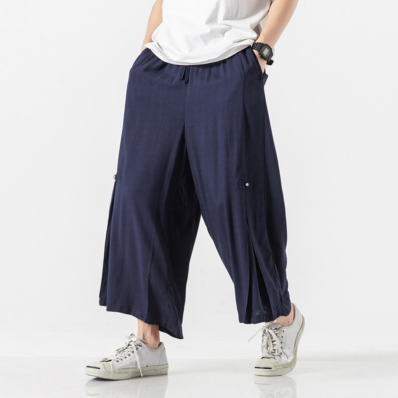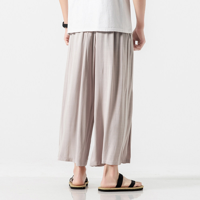 Chinese-style culottes men's nine-point pants cotton and linen drape fairy-like Song pants extra wide drop-feel wide-leg pants linen meditation 9-point pants