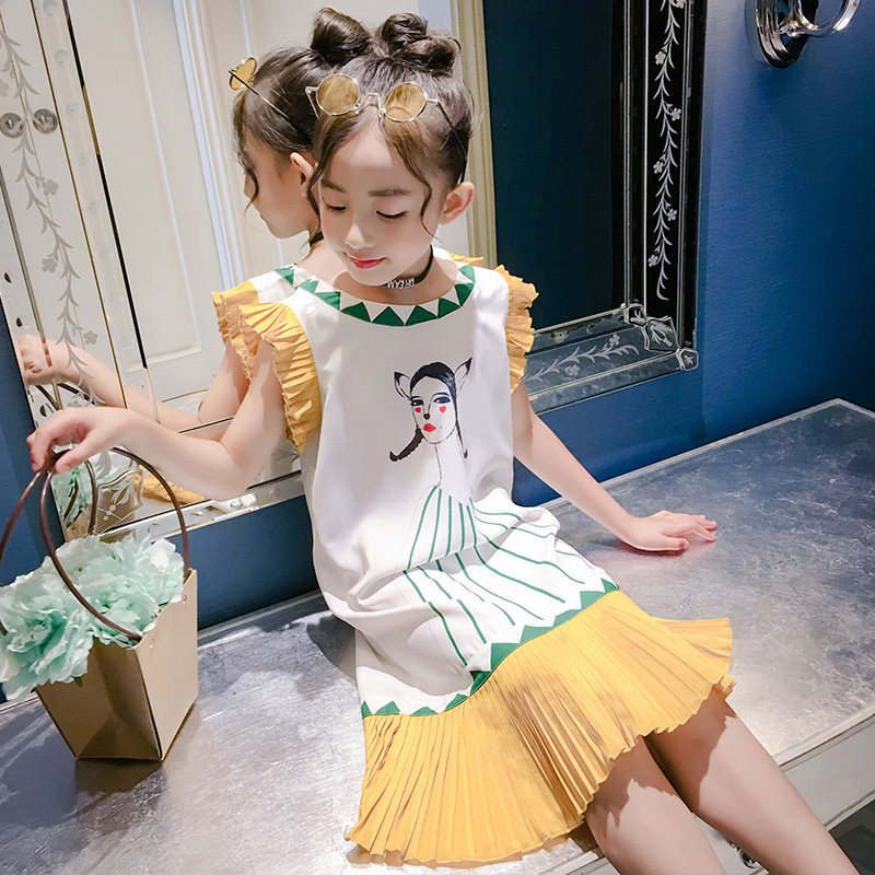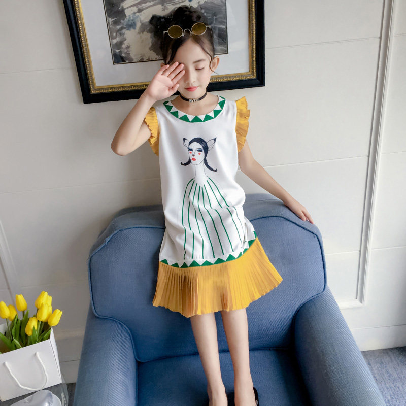Girls ' summer clothes 2021 new foreign school big child child girl clothes girls summer sleeveless thin dress tide