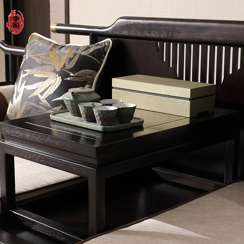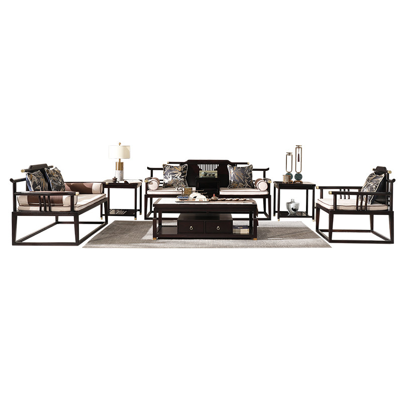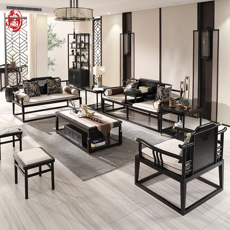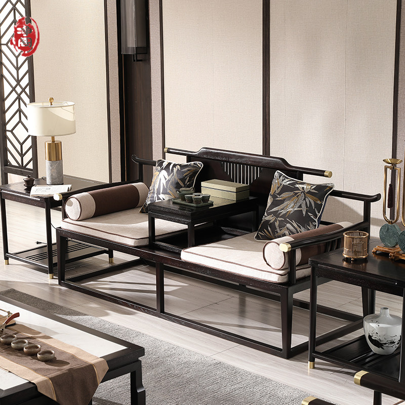 New Chinese-style sofa 123 modern minimalist home solid wood fabric living room walnut furniture size combination