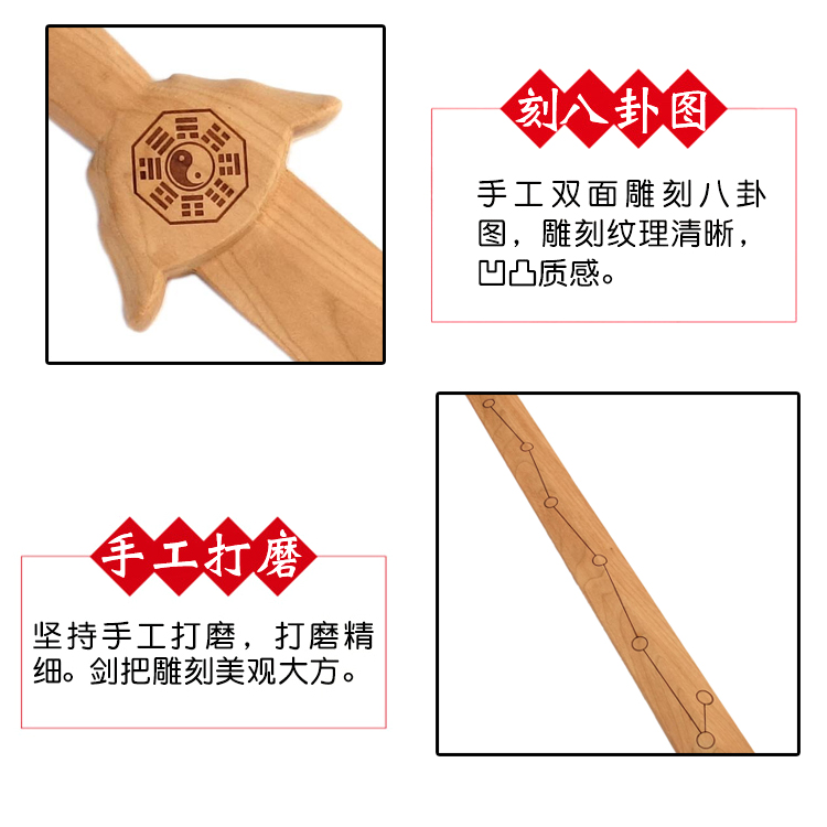 Audious peach sword hangs the Taoist sword one gossip seven star sword log without paint supplies fitness morning practice Tai ji sword
