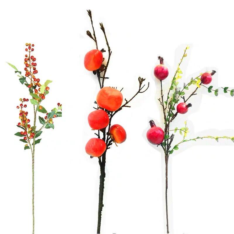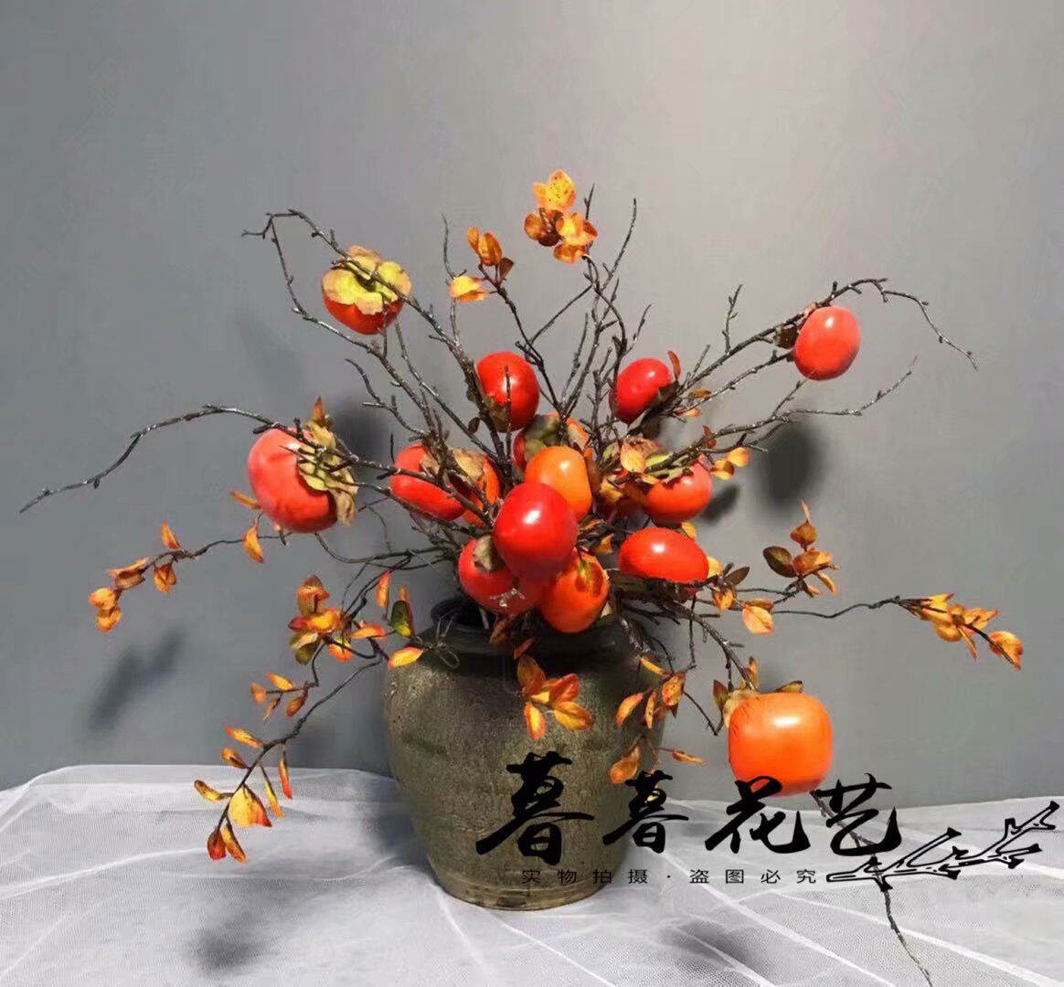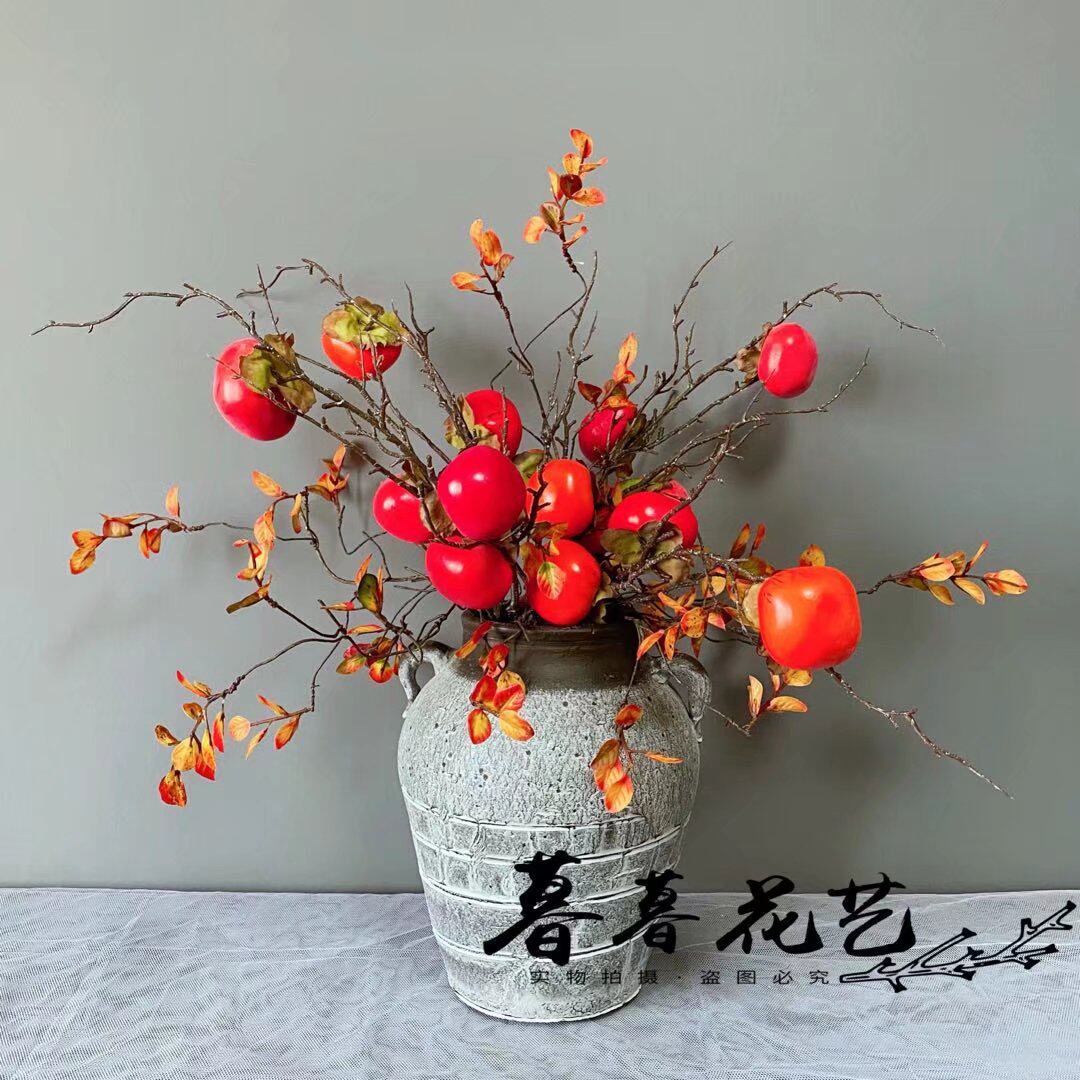 Frost persimmon simulation flower and fruit branches living room green plant potted decoration set dry flower arrangement fake flower persimmon branch fruit
