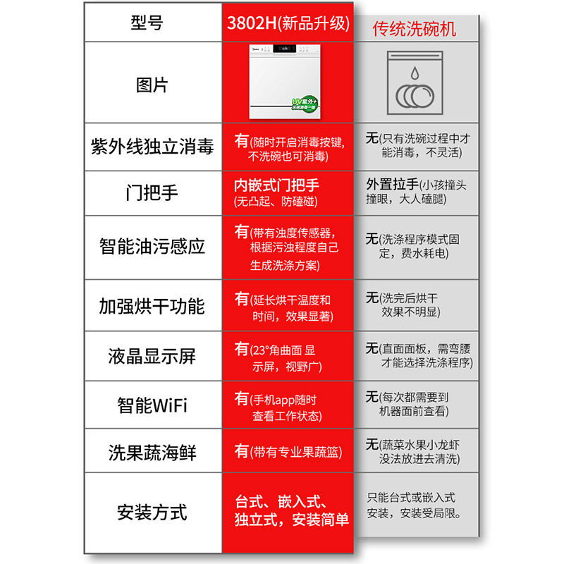 Midea W3802H dishwasher disinfection cabinet integrated smart home appliances automatic washing 8 sets of embedded installation-free