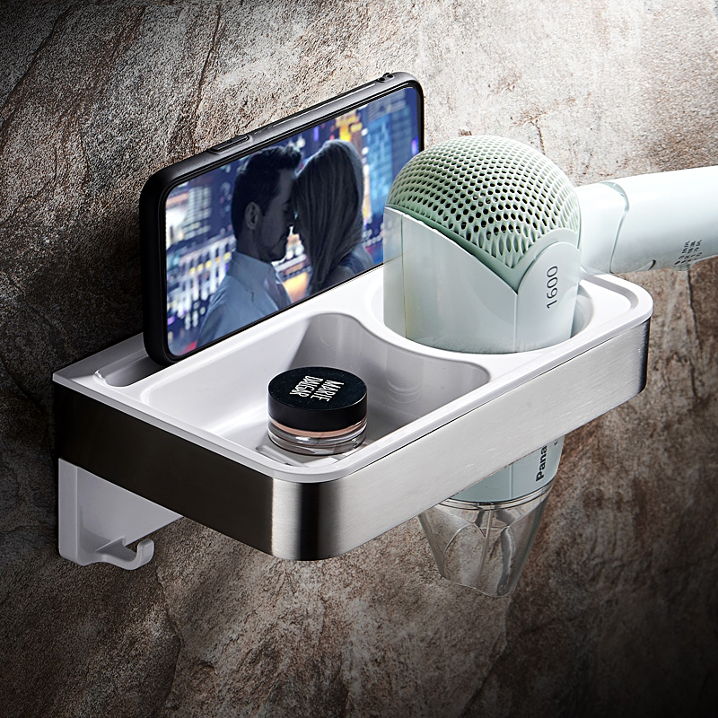 Free hole 304 stainless steel hair dryer rack multi-function shelf Powder room bathroom wall-mounted hair dryer rack household
