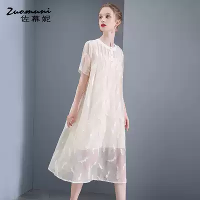 Soma Ni loose apricot color embroidered chiffon dress 2019 new summer Women long version thin temperament 11072