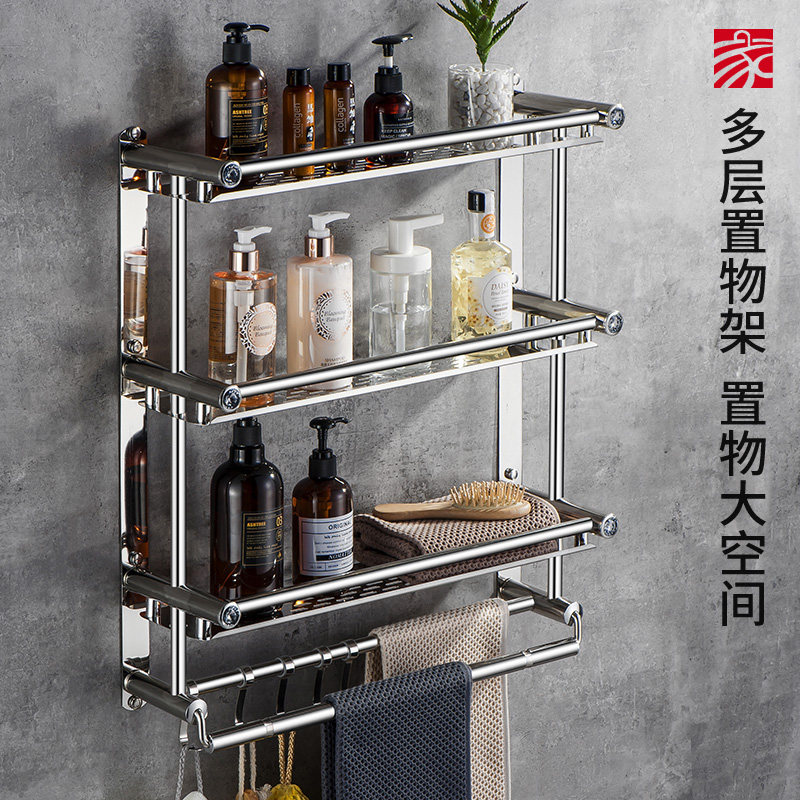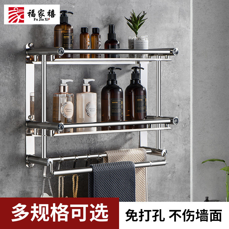 Bathroom shelf Powder room punch-free wall-mounted towel rack Stainless steel double layer 3 toilets toilet pendant