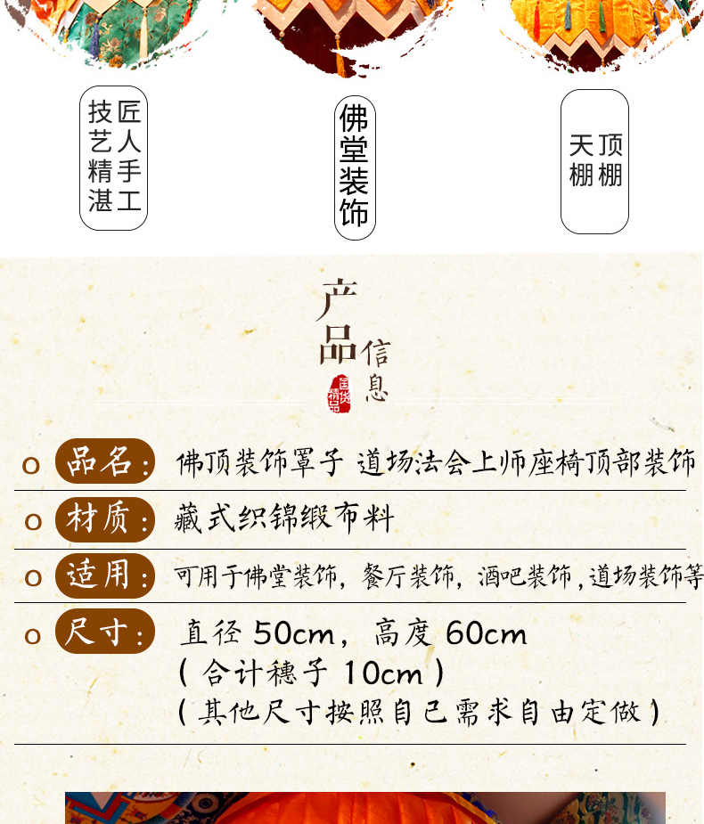 Buddhist hall ornaments Buddha roof lid Tibetan cloth festival top decoration umbrella cover temple Temple supplies