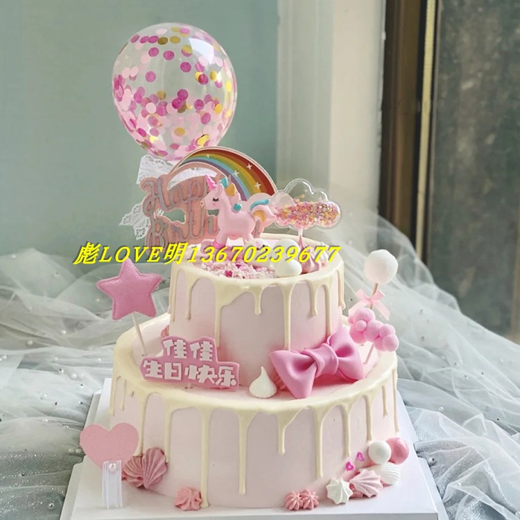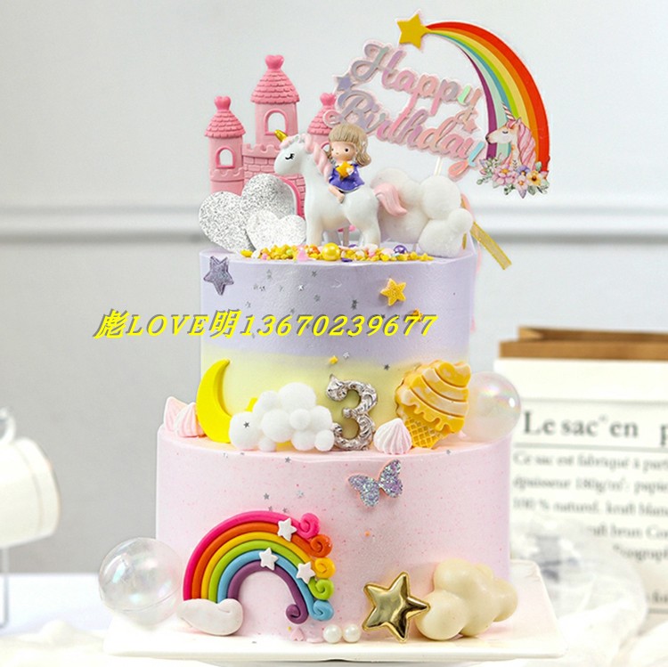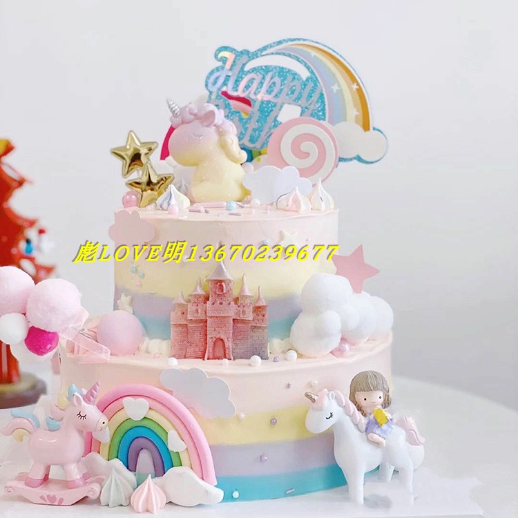 New multi-layer unicorn cartoon cute simulation birthday cake model Trojan cake sample photo props