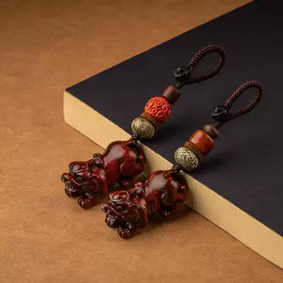 High-grade sandalwood lucky car keychain pendant creative personality men and women handmade writing hanging chain gift