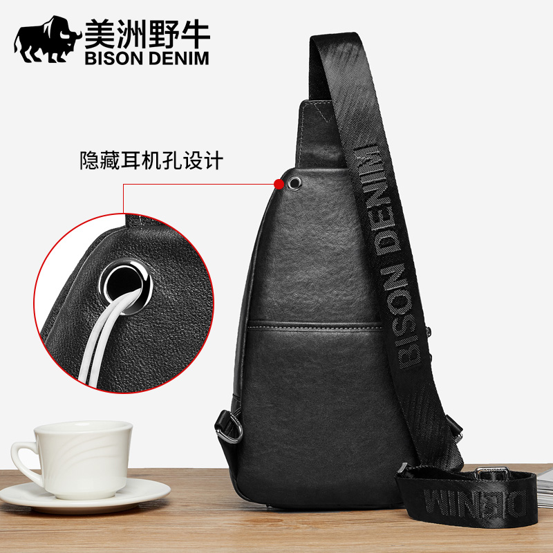 American Buffalo New Soft Buffalo Leather Tide Men Simply Breakbag British Fashion Leather Sabble Backet