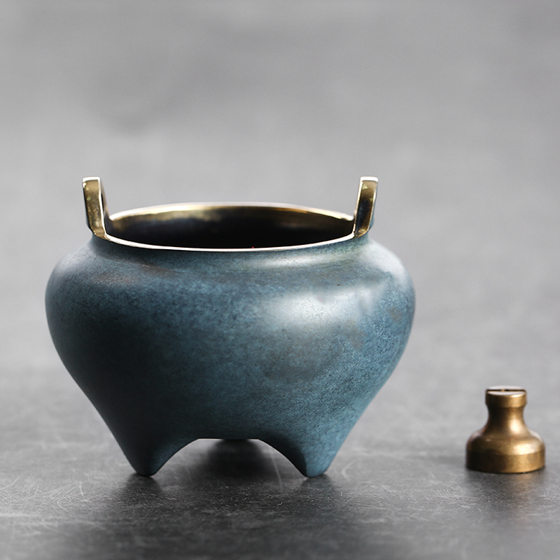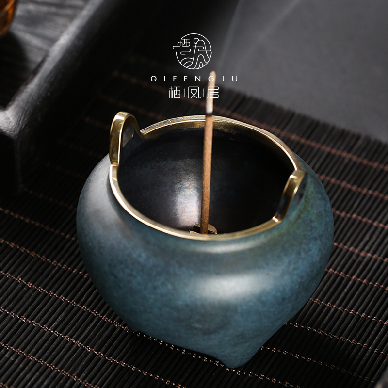 Qifengju antique pure copper wire incense burner Three-legged cupola incense seat incense insert Household ornaments Indoor tea ceremony aroma stove