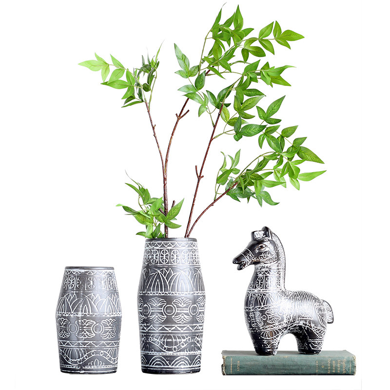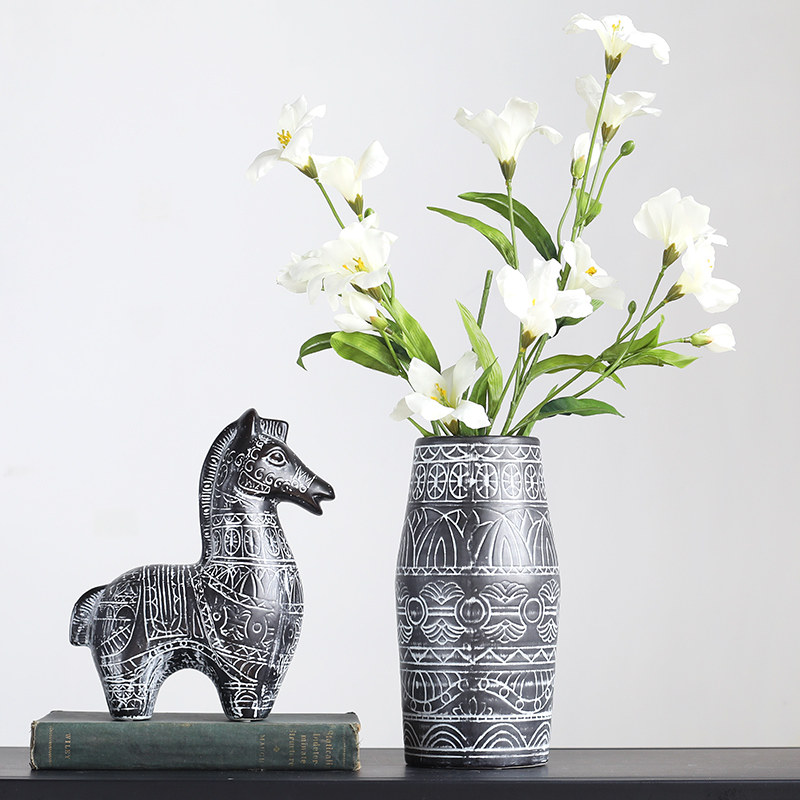 Wind Chanting Mattotem Vase Retro Creative Ceramic Vase Hem Flower Floral Floral Decoration Craft Gift Pendulum Decoration