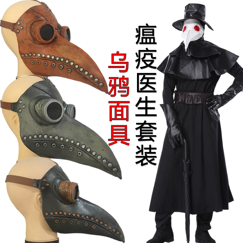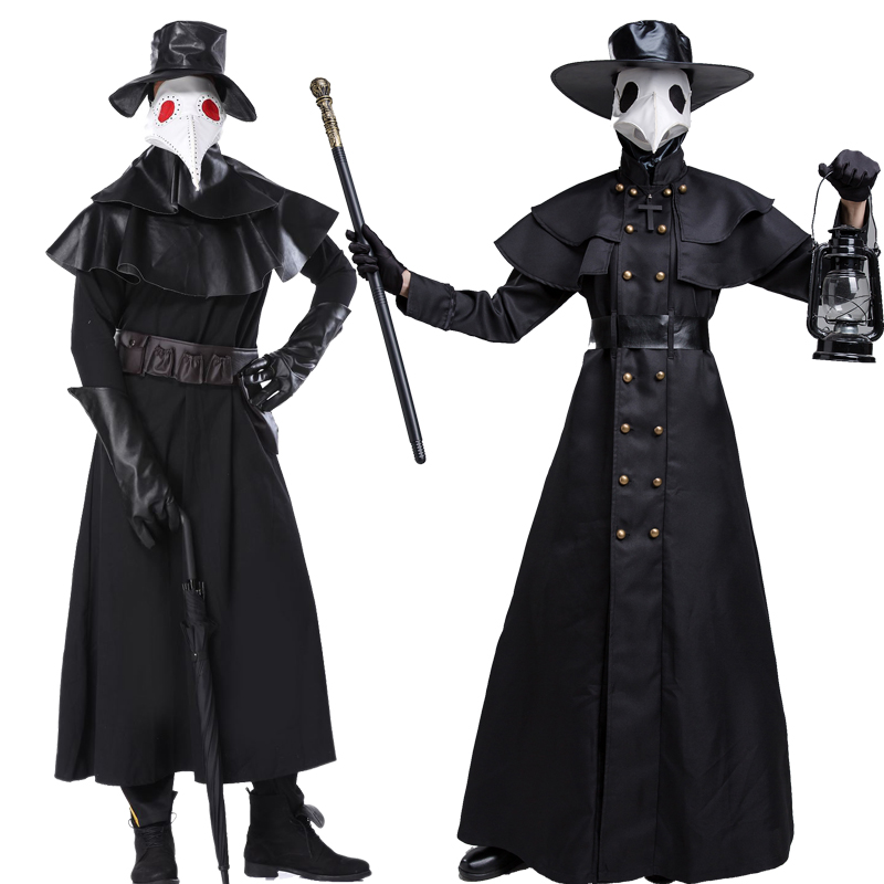 COS Halloween Plague Doctor Costume Dark Dungeon Hero Costume Crow Beak Mask Stage Performance Costume
