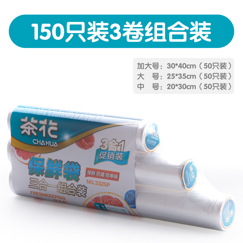 Camellia disposable fresh-keeping bag fresh-keeping film thick food bag with roll bags large, medium and small household fruit and vegetable bags hand torn bags